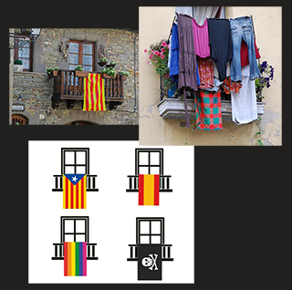 bandera catalana, Derecha, balcón de una modesta casa sin lavadora-secadora.