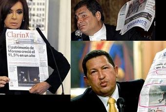 En un lado, los grandes medios privados sostienen que la libertad de expresión y la continuidad misma de algunas empresas periodísticas se encuentra en riesgo por regímenes que definen como autoritarios y suelen comparar con el fascismo. En otro lado, los gobiernos llamados populistas o de izquierda de Argentina, Bolivia, Ecuador y Venezuela acusan a los medios de dañar la democracia por sus coberturas sesgadas, sus prácticas monopólicas y su supuesto afán de alentar golpes de Estado en su contra.
