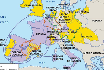 Sucesión (1701-1713):El ascenso al trono español de Felipe V (Castilla) representaba la hegemonía francesa y la temida unión de España y Francia bajo un mismo monarca. Este peligro llevó a Inglaterra y Holanda a apoyar al candidato austriaco el archiduque Carlos (Aragón).