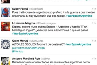 Ayer Twitter ardía bajo fuego enemigo. El enemigo, en esta ocasión no era otro que Argentina. El enemigo verdadero está ya engrasando las máquinas de la Armada Inservible para cruzar el charco e invadir ese país en una incursión sorpresa. Sucedió en Perejil y son muchos los que añoran aquellos tiempos gloriosos de victoria tras victoria. El hashtag #warSpainArgentina fue trending topic en Twitter durante un buen rato, el que yo me entretuve leyendo a unos y otros y elaborando minuciosamente una lista de la compra interminable ante el previsto desabastecimiento de los