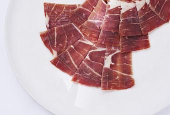 - Las lonchas deben ser homogéneas y finas, sobre un plato liso y blanco que permita que el Jamón Ibérico sea el centro de atención.