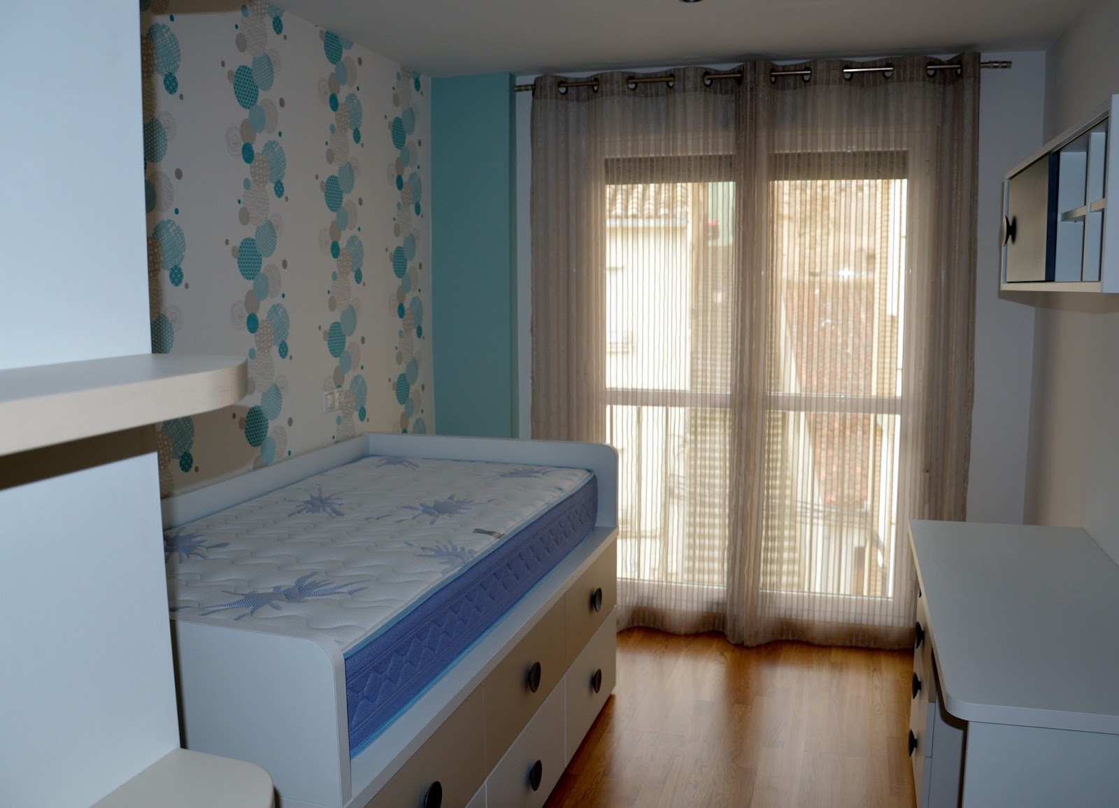 En este caso no nos compensaba nada poner una cama supletoria ya que, tampoco se iba a poder sacar bien debido a que enfrente tenemos el escritorio.