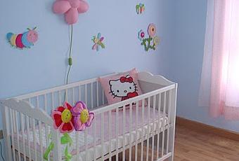 "Encantada te envío las fotos de la habitación de Julia. Como te decía en el blog, la cuna y la estantería son de Ikea, de menos de 100€ cada cosa. El cambiador es de El Corte Inglés y los adornos de la pared me costaron menos de 30€ y son de Imaginarium, la lámpara en forma de flor de Ikea que costó unos 6€.