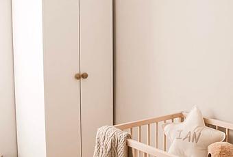 Otra idea que teníamos clara, era que no queríamos una de esas habitaciones hechas a medida, ni complicarnos demasiado con la elección de los muebles, preferíamos algo sencillo que no nos duela ir modificando con los años, y adaptándose ya sea a sus necesidades, a las nuestras, o al lugar donde vivamos en el futuro, así que apostamos por hacer una composición al gusto con muebles básicos de Ikea, y personalizarlos un poco.La cuna, el armario y la cómoda son de Ikea, podéis ver los modelos aquí, aquí y aquí. Cambiamos los tiradores originales por unos de nudo de cuerda de Zara Home que podéis ver en este enlace.