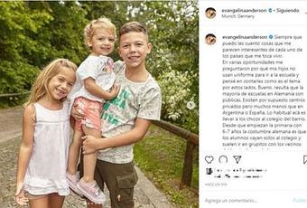 Horas atrás, Evangelina respondió a la oleada de seguidores que le preguntaban por qué sus hijos (Bastián, Lola y Emma) no usan uniforme para ir al colegio.