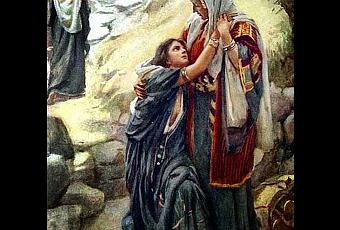 Como cuenta la Biblia, había en Belén de Judá un hombre llamado Elimélec, casado con Noemí con dos hijos. Hubo allí una época de hambre y emigraron a Moab, tierra lejana a Belén. Noemí se quedó viuda y sus dos hijos se casaron con mujeres moabitas. Una de ellas se llamaba Rut. Después de un tiempo, murieron los dos hijos de Noemí y ella quedó sola con las dos nueras. Noemí regresó a su tierra Judá con sus nueras en busca de alimento. Les explicó que debían volver a su tierra porque ella no podía hacer nada por ellas. Una de ellas volvió con sus padres y la otra nuera (Rut) quiso quedarse con su suegra Noemí. Le dijo que iría donde ella fuera, viviría donde ella viviera, su pueblo sería su pueblo, su dios sería su dios y moriría donde ella muriera. Noemí aceptó a su nuera y se fueron a Belén en plena cosecha.