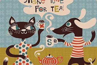 "Ilustración "Make time for tea" de Helen Dardik. Edición limitada estampada sobre suave terciopelo"