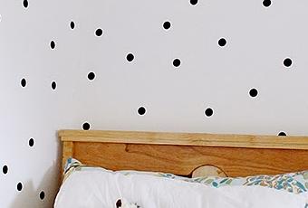Si estas pensando en renovar las paredes de tu casa hoy te traigo una sencilla idea...............colocar pegatinas de vinilos de lunares, con una solución barata cambiareis el aspecto de la estancia.