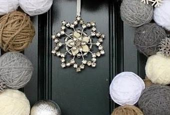 Vamos a ser originales, o eso es lo que pretendo con esta sección de los miércoles. Una corona con bolas del árbol de navidad y ovillos de lana, me parece una buena opción. En la imagen esta en colores tierras y grises, pero tu la puedes confeccionar como quieras.