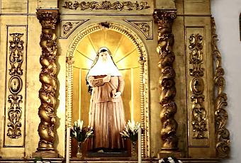 Comenzamos por los pies de la nave de la epístola donde se encuentra el retablo de Santa Ángela, de estilo barroco adornado con columnas salomónicas, en cuya hornacina se ha colocado una reciente talla de la santa sevillana.
