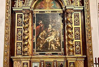 El último retablo del muro de la Epístola (que no el último de la nave de la Epístola) es el hermoso retablo barroco dedicado a la Piedad. Este retablo del siglo XVII tiene como motivo central un hermoso lienzo inspirado, que no copia, de una obra ("La lamentación") del pintor Anthony van Dick que se encuentra en el Museo del Prado y fue pintada hacia 1629.