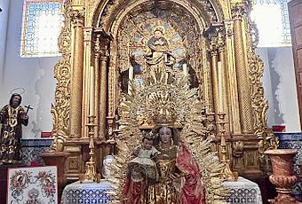 La Virgen del Rosario es una talla de candelero realizada en el siglo XVIII. La Virgen del Rosario es una Imagen atribuída a la gubia del genial maestro, Francisco Antonio Ruiz Gujón, fue desmochada para vestirla, en 1994 fue reconstruida por el taller Ixbilia, participando el actual taller de ' Daroal', que le puso un hermoso y brillante estofado. Su estilo se inscribe dentro del barroco sevillano tardío, caracterizado por su delicadeza y expresividad. La Virgen está representada con una expresión serena y maternal. Porta al Niño Jesús en su brazo izquierdo, mientras que en su mano derecha sostiene un rosario. La imagen está ricamente vestida con mantos bordados y joyas donadas por los fieles a lo largo de los siglos. Es objeto de gran veneración, especialmente durante el mes de octubre, cuando se celebra el Rosario público y otros actos litúrgicos en su honor.