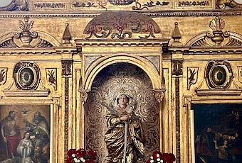 El Retablo de la Primitiva, Fervorosa e Ilustre Hermandad de Santa Lucía, Virgen y Mártir, recompuesto con elementos de principios del XVII, con pinturas de misma datación, procede de la desecularizada Iglesia de Santa Lucía, de donde también procede la portada principal del templo de estilo gótico-mudéjar.
