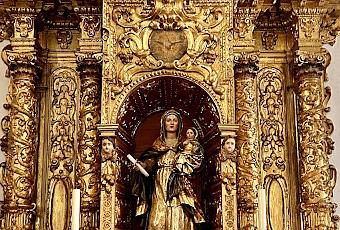 Junto al retablo de la Virgen del Carmen, en el muro de la nave de la Epístola, podemos ver este retablo barroco de mediados del siglo XVII dedicado a Santa Ana y la virgen niña.