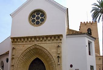 Sobre el arco de entrada se encuentra un rosetón de piedra con tracería gótica, que filtra la luz hacia el interior del templo y otorga equilibrio visual a la fachada. Este rosetón es uno de los elementos más representativos de la iglesia y uno de los pocos en Sevilla que han sobrevivido sin alteraciones desde su construcción.