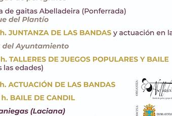 A lo largo de la mañana se realizarán pasacalles con la banda de gaitas Malpica de Bergantiños en la Plaza Luis del Olmo, La banda de gaitas de Vega de Espinareda en el Albergue de Peregrinos y la Banda de gaitas Abelladeira en el Parque del Plan´tio, a las 13 horas se reunirán en una Juntanza de bandas con actuación en la Plaza del Ayuntamiento de Ponferrada.