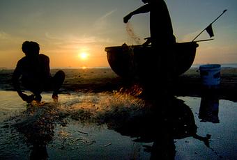Me inquietó el anciano, así que me senté junto a su cesta de aparejos escuchando intrigado su canción. Pasaron diez minutos y no ocurría nada. Pasaron veinte minutos y todo seguía igual. Tras más de una hora yo no veía mi regalo. A la hora y media el hilo de la caña comenzó a agitarse con golpes secos y continuos. Advertí al viejo de que algo estaba ocurriendo, pero no pareció escucharme y continuó cantando su canción. Movía con destreza su muñeca acompañando el chapoteo, pero yo no paraba de pensar que aquello era un pez y que había que sacarlo cuanto antes. Así que se lo dije y él me contestó: