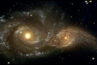 El Cosmos esta lleno de gigantescos universos islas que son las galaxias, estás están en continuo movimiento por la propia expansión del espacio, pero también se mueven en otra direcciones interactuando mucho con el medio y muchas veces chocando entre ellas. Estos tremendos choques generan otra nueva galaxia mucho más grande.