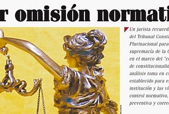 Inconstitucionalidad por omisión normativaLa Constitución Política del Estado (CPE) indica que el Tribunal Constitucional Plurinacional (TCP) es la institución encargada de velar por la supremacía de la Constitución, toda vez que ejerce el control de constitucionalidad y precautela el respeto y la vigencia de los derechos y las garantías constitucionales. El TCP ejerce –por mandato constitucional– la justicia constitucional.