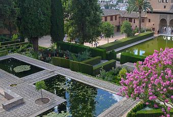 Nuestra visita comenzó por El Generalife, que era el palacio utilizado por los reyes musulmanes como lugar de descanso y recreo. Fue construido entre los siglos XII y XIV como una bella hacienda ideal para la explotación agrícola y el descanso, con un núcleo de edificación residencial y una vasta extensión de terreno de cultivo y pasto, compartimentada en paratas o bancales mediante cuatro grandes huertas.