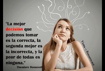 "La mejor decisión que podemos tomar es la correcta, la segunda mejor es la incorrecta, y la peor de todas es ninguna." Theodore Roosevelt