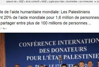 El 20 % de la ayuda humanitaria mundial va directamente a manos palestinas, el 80 % al resto del mundo.