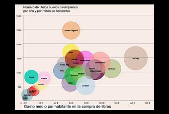 El último informe “Global Trends Publishing 2014”, publicado por el “Frankfurt Book Fair Business Club” presenta la situación del mercado internacional del libro y la profunda transformación que está experimentando el sector editorial, debido a la irrupción del libro digital, a la entrada en el mercado de nuevos protagonistas como Amazon, Apple y Google, y a la globalización de una industria que tradicionalmente ha sido conservadora y cerrada a los límites de sus fronteras.Seis países poseen el 61% del mercado mundial. El primero es Estados Unidos (26%), seguido de China (12%), Alemania (8%), Japón (7%), Francia (4%) y Reino Unido (3%). Pero algo está cambiando, ya que la demanda sigue creciendo en muchas de las economías emergentes, mientras que se ha estancado o se ha contraído en los países industrializados. Así por ejemplo, China ha alcanzado el segundo puesto en el ranking —que, durante décadas, se han disputado Alemania y Japón—, aunque muy lejos todavía en el consumo per cápita.El cuadro siguiente es muy pedagógico. El eje de abscisas representa el importe medio que cada persona de un país gasta cada año en libros; y el eje de ordenadas, el número de títulos nuevos o reimpresos que se publican anualmente en cada país por cada millón de habitantes. La primera conclusión es que el mercado del libro está concentrado en un pequeño número de países que poseen cultura europea o anglosajona, además de Japón y Corea.