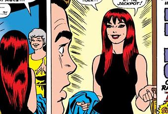 Como muchos ya sabréis, la primera vez que de Mary Jane Watson apareció físicamente en un cómic fue en The Amazing Spider-Man #25 (junio de 1965), si bien aquella primera aparición -dibujada por el irreverente Steve Ditko- tenía trampa, pues se cuidaba de no mostrar el rostro de la joven que, convenientemente, aparecía tapado por una planta como recurso para prolongar en el tiempo el misterio de su auténtico aspecto. Así, no sería hasta el The Amazing Spider-Man #42 (noviembre de 1966) que se desvelaría su fisonomía. Para entonces, mi admirado John Romita ya se había hecho con los lápices de la serie, y dejó para el recuerdo la legendaria viñeta de "Acéptalo, tigre, ¡te ha tocado la lotería!" (que corona este artículo). Pero... ¿sabíais en quién se basó el artista para la apariencia que acabó dándole a la pelirroja?