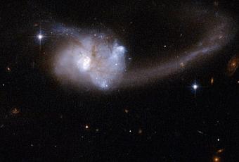 Estas colas de marea pueden persistir mucho tiempo después de que las galaxias finalmente se hayan fusionado. ESO 286-19 se encuentra a 600 millones de años luz de la Tierra y es una fuente excepcionalmente luminosa de radiación infrarroja.