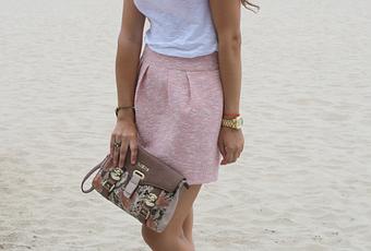 Buenos días, ahora mismo estoy de camino a Madrid... y os enseño las fotos que hicimos el otro dia en Benidorm, fuimos a comer a un restaurante italiano buenísimo (adoro la pasta!!) Ese día no hizo muy buen día de playa y como podeis ver habia poca gente pero normalmente ésta playa está a tope. Seguro que muchos de vosotros habeis ido a Benidorm ... En cuanto al outfit, tengo que decir que está lleno de regalos... Estrené la faldita de tweed que me regaló hace poco Rober, me encanta la forma que tiene y el color, es muy candy!! El clutch regalo de la firma Loed´s. Y acompañando al print de pitón del clutch el collar de serpiente!!! Y la pulserita con charms regalito de Las Zarandajas de la Yola¿Os gusta éste look?