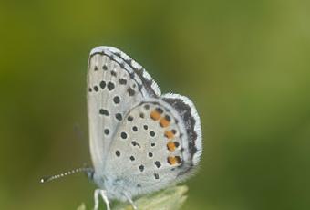 Es este un bonito licénido cuyos machos presentan un precioso color azul cielo y fimbrias ajedrezadas, mientras que en el reverso cuentan con una serie de lúnulas submarginales en las alas inferiores. Es endémica de Europa, ocupando áreas del SO del continente, mientras que en la Península Ibérica se distribuye sólo por la franja más al norte, la conocida cornisa cantábrica.