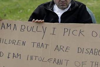 Edmond Aviv, de 62 años, ha sido condenado a mostrar públicamente un cartel en el que reconoce ser un «matón» por acosar e intimidar a una vecina y a sus hijos discapacitados durante los último 15 años. Un juez de un tribunal municipal de Ohio ha obligado al hombre a estar durante cinco horas del domingo sentado en un banco, en South Euclid, con un gran letrero en el reconoce que es un intolerante con los que son diferentes y que sus acciones no reflejan el aprecio por la diversidad de la comunidad en la que vive.