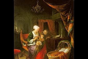 Esta bonita escena pertenece a Gerrit Dou (1613-1675). Dou fue un pintor barroco que tuvo como principales maestros a su padre, un artista de la pintura sobre cristal y al mismísmo Rembrandt, del que fue alumno en su taller durante mucho tiempo.