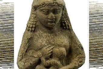 Esta figurita de terracota es relativamente más reciente, del 6000 a.C., y fue encontrada en el territorio en el que miles de años después se erigiría una de las civilizaciones antiguas más importantes: Babilonia. La madre de terracota no sólo representa a la mujer fértil sino también a su bebé lactante.