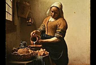 Vermeer: La lecheraEl pintor holandés Vermeer destacó por pintar escenas de la vida cotidiana, como este cuadro. La luz que dibuja transmite una especial sensación de serenidad.Jan VermeerJan Vermeer (1632-1675), pintor holandés que destacó por sus retratos de escenas de interiores llenas de serenidad, compuestas con una claridad matemática e imbuidas de una luz fría y plateada.Vermeer, también llamado Jan van der Meer van Delft, nació en Delft y fue bautizado el 31 de octubre de 1632. Tras seis años de aprendiz, parte de ellos a las órdenes del pintor holandés Carel Fabritius, fue admitido en 1653 en la cofradía de San Lucas como maestro pintor. Fue un miembro importante de ella y sirvió en el consejo de gobierno. Se ganó la vida modestamente como marchante más que como pintor.Sólo se conservan 35 lienzos de Vermeer. Este pequeño número parece ser fruto del metódico y deliberado estilo de trabajo de este autor, su corta vida y la desaparición de muchas de sus obras durante un periodo de oscuridad tras su muerte en Delft, el 15 de diciembre de 1675.Con algunas excepciones, que incluyen paisajes, escenas de calle y algunos retratos, la producción de Vermeer consistió en interiores domésticos llenos de luz en los que una o dos figuras están leyendo, escribiendo, tocando un instrumento musical, o realizando alguna tarea doméstica. Estas obras de observación y ejecución precisa de la vida holandesa del siglo XVII se caracterizan por un sentido geométrico del orden.Vermeer fue una maestro de la composición y la representación en el espacio. Joven dormida a la mesa (c. 1656, Museo Metropolitano de Arte, Nueva York) ejemplifica su manejo de las tonalidades y la perspectiva sobre el fondo, hacia el plano medio y más allá en la distancia. En La lechera (1660, Rijksmuseum, Amsterdam), Mujer con jarra de agua (1663, Museo Metropolitano de Arte), Vista de Delft (c. 1660, Mauritshuis, La Haya) y otras obras, se recogen los efectos de la luz con una sutileza, delicadeza y pureza de color que son virtualmente únicas. Entre sus obras también destacan Soldado y mujer riendo (1657, Frick Collection, Nueva York) y Joven con sombrero rojo (1667, National Gallery of Art, ciudad de Washington).Vermeer fue olvidado tras su muerte y no se le redescubrió hasta el siglo XIX. A partir de entonces su reputación ha crecido de modo constante. Hoy se le considera uno de los más grandes pintores holandeses.