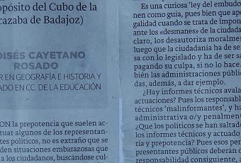 Con la prepotencia que suelen actuar algunos de los representantes políticos, no es extraño que se den situaciones embarazosas que enfrenten a los ciudadanos, buscándose culpables precisamente en los que pretenden precisamente que la legislación vigente se cumpla. Legislación dictada por los mismos políticos que la vulneran, pensando que ellos están por encima de lo que a los demás obliga taxativamente.Es el caso lacerante de la pretendida Hospedería en el Castillo de Alburquerque o en Convento San Juan de Dios de Olivenza, con lo que se ha agredido vilmente a sus respectivas fortificaciones abaluartadas, para luego desistir del proyecto, tras obtener a la vez sendas condenas judiciales. O el de la Facultad de Biblioteconomía, encajada en la Alcazaba almohade de Badajoz, y que sentencia tras sentencia se ordena el derribo parcial.Esto por no hablar de la agresión constante a los derechos de sus propios trabajadores y sus representantes, como ocurre en el Ayuntamiento de Mérida, obsesionado con la persecución de sindicalistas, que luego se ha ido condenando en las instancias contencioso-administrativas. No digamos en el Ayuntamiento de Badajoz, que en convocatorias para provisión de plazas de funcionarios ha “ignorado” la normativa vigente de manera frecuente, desautorizado a continuación por los tribunales de justicia.Es una curiosa “ley del embudo” la que tienen como guía, pues bien que apelan a la legalidad cuando se trata de imponer criterios ante los “desmanes” de la ciudadanía. Y esto, claro, los desautoriza moralmente. Desde luego que la ciudadanía ha de ser respetuosa con lo legislado y ha de ser sancionada, pagando su culpa, si no lo hace. Pero también las administraciones públicas, obligadas, además, a dar ejemplo.¿Hay informes técnicos avalando dichas actuaciones? Pues los responsables serán los técnicos “malinformantes”, y han de sufrir administrativa o/y penalmente por ello. ¿Qué los políticos se han saltado a la torera los informes técnicos y actuado con altanería y prepotencia? Pues esos perniciosos representantes públicos deberán correr con la responsabilidad consiguiente, administrativa, política y penalmente. Lo que no pueden es irse unos o/y otros “de rositas”, y cargar las culpas contra el que denuncia los desaguisados.