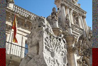 El atrio de la Universidad (facultad de derecho) está acotado por una serie de columnas rematadas por unos leones sosteniendo diversos motivos heráldicos, conociéndose el lugar como los leones de la Universidad. Estos fueron realizados entre 1724 y 1726 por José de la Portilla y Santiago González, ayudados por Antonio de la Cebada y Antonio de Bedia.