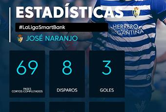 El rendimiento del número ‘20’ de la ‘Ponfe’ ha sido extraordinario en este primer tramo de temporada, disputando 424 minutos hasta la fecha y convirtiéndose en un jugador imprescindible para el míster, partiendo en el XI inicial de cada jornada. Ha logrado marcar tres tantos en ocho disparos a puerta. Además, ha conseguido enviar con criterio y efectividad 69 pases en campo contrario. Asimismo, su poderío físico le permite salir victorioso de 31 duelos a favor de su equipo. Este es José Naranjo, nuestro protagonista de la jornada 5 de LaLiga SmartBank ¡Seguiremos muy de cerca los pasos de este auténtico crack de la categoría de plata!