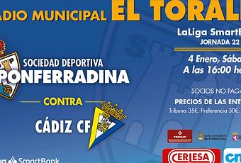 EL fútbol regresa con Municipal El Toralín, será el sábado 4 de enero a las 16:00 horas con el partido de vuelta con el equipo gaditano: SD Ponferradina vs Cádiz C.F.