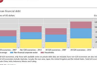 El primero de ellos es la deuda mundial no financiera de las economías del G20 y algunas emergentes, que supone a 31 de diciembre de 2012 entorno a los 130 Billones de dólares y que desde 2.007 ha crecido entorno a un 30%, unos 30.000 billones de dólares.