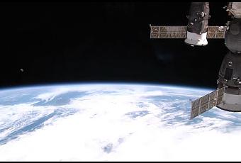 La cámara captaba de lejos a la Luna, casi en el horizonte terrestre.