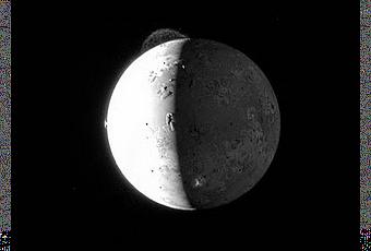 Un poco mayor que la Luna de la Tierra, Ío es el más interno de los grandes satélites de Júpiter y el cuerpo más activamente volcánico del Sistema Solar, con columnas de materia que alcanzan los 300 kilómetros desde la superficie.Esta actividad extrema es el resultado del potente tirón gravitatorio de Júpiter, que provoca que la atormentada corteza sólida de Ío se estire y contraiga 100 metros o más, generando un intenso calor en Ío debido a la fricción. Aunque el calor cerca de los volcanes puede alcanzar los 1.649 grados C, lo bastante alto para tener lava líquida, la temperatura superficial de Ío tiene una media de -130 grados C, dando lugar a campos de nieve de dióxido de azufre.