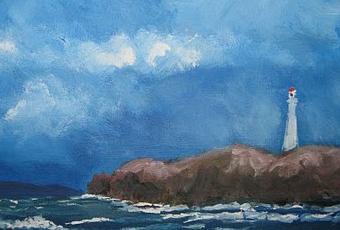 (Cuadro del pintor actual ecuatoriano Manuel Leniz León Cedeño, El Faro; Óleo del pintor puntillista francés George Pierre Seurat, Final del embarcadero, Honfleur, 1886; Ilustración de una recreación del antiguo Faro de Alejandría; Fotografía del Faro de la isla Great Isaac Cay, Bahamas; Fotografía de principios del siglo XX del Faro de Eddystone, Plymouth; Fotografía actual del mismo Faro de Eddystone, con un helipuerto añadido; Fotografía de La Torre de Hércules, antiguo Faro romano aún en funcionamiento, La Coruña, España; Fotografía actual de la isla de Eilean Mor, Islas Flannan, Escocia, con su faro.)