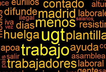 Se puede ver una evolución. Al inicio del conflicto, en las redes lo mueve con mucha más fuerza los perfiles de la CGT, los perfiles de manifestantes orgánicos no tienen aún suficiente fuerza, y es cuando con más fuerza aparece una nube de tags centradas en UGT (principal objetivo a desgastar por CGT en abril, previo a las elecciones en Telefónica).