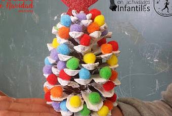 Imagen.- Árbol de Navidad hecho con un piña, pompones pequeños y goma eva. (Taller Creativo).