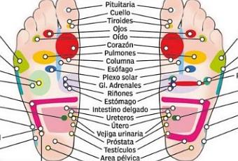 Revisé mi mapa de reflexología para ver más o menos la correspondencia de los diversos puntos del pie con los órganos del cuerpo. Así que cada vez que mis pequeñas tienen una mala noche, o están un poco nerviosas, les hago un poco de masaje en los pies y quedan divinas.