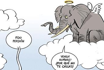 La leyenda cuenta que el elefante, noble e inteligente, nunca olvida, ni como individuo ni en una suerte de memoria colectiva, ancestral. Estos días hace justo un año, el rey Juan Carlos (74 años) se fracturó la cadena en tres pedazos en Botsuana al caer durante un viaje privado para matar elefantes. En plena crisis económica, con una situación desesperada para muchos de sus súbditos, la noticia fue una escandalera, no solo porque la Corona volvía a dar síntomas de un alejamiento de la sociedad que la toleraba como mal menor, sino también de la realidad. Lo real resultó un espejismo donde cazadores blancos arropados de privilegios daban rienda suelta a un comportamiento decimonónico. El elefante murió. Pero la Corona quedó herida también, de muerte. El mal hizo metástasis y el anacronismo se extendió por órganos vitales. Ni los riñones dieron abasto a purificar tanta toxina. Este mal, como muchos otros, es hereditario.