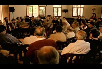 Como en "Cien niños esperando un tren", en "La mamá de mi abuela le contó a mi abuela" Ignacio Agüero registra una iniciativa, en este caso idea del actor Héctor Noguera, en donde él junto a su compañía de teatro se dirigen a Villa Alegre, un pueblo rural del sur de Chile, para hacer una obra de teatro sobre la historia misma del pueblo, contada e interpretada por los mismos habitantes, todo lo cual requiere no sólo los esperables procesos de guión y producción, sino que la investigación de historias, leyendas, etc., contadas de generación en generación por la gente del campo. Así, como en ese documental sobre el taller de cine para niños, Agüero no se queda únicamente con la iniciativa artístico-cultural, sino que la aprovecha como base o como salto para adentrarse, a su manera, en la vida de ese (en apariencia) apacible pueblito: el trabajo sobre todo en viñas, la época de la vendimia, los adultos y los viejos que han pasado toda su vida en esos campos recolectando uvas, la vida de antes, las jornadas, los patrones y lo que se decía de ellos (que eran malos, que eran buenos), el diablo, el toro de los cuernos de oro, el análisis (desde una visión historicista y también social) de todas esas historias tan bien rescatadas por grandes como Oreste Plath o Yolando Pino (entre muchos otros), las reuniones para planificar la obra, los jóvenes y cierta distancia con las raíces del pueblo, los jóvenes y su intención mayoritaria de irse a otras ciudades para surgir y no trabajar siempre en lo mismo (por cierto, trabajo que, si nos fijamos bien, convoca tanto a profesores como a personas, sin ser peyorativo en lo absoluto, "menos educadas"... trabajo como una tradición, como parte de la identidad del ¿villalegrino?). Si nos ponemos o románticos o idealistas o sentimentales, puede que "La mamá de mi abuela..." sea también el registro de una forma de vida que se va, una vida más ligada con la naturaleza y puede que con el tiempo como lugar físico, si me permiten el desvarío.