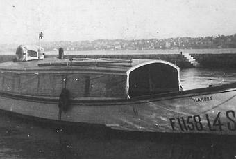 «La Mañosa». Primera trainera de pesca que navegó en Santander a motor en septiembre de 1916. Dos meses después de esa fecha sería adquirido por Manuel Bedia Castanedo, que la dedicó al transporte de viajeros. Fue el primer barco con motor que prestó servicio entre Santander, Pedreña y Somo. Imagen de La Cueva del Muelle.
