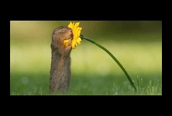 Cuenta que la ardilla llegó a la margarita amarilla y tocó la flor, para luego cerrar sus ojos como oliendo el aroma. Después de eso, la ardilla se inclinó para morderla, cuenta el fotógrafo.